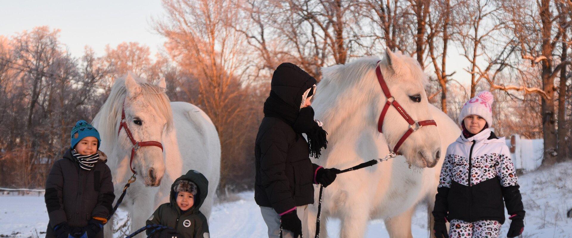 Talveelamused Voore Tallides - ree- ja saanisõidud valgete hobustega