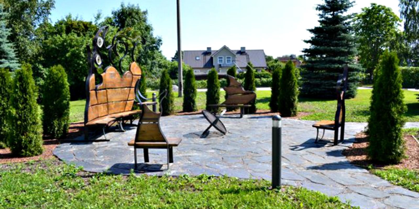 Commemorative benches in the courtyard of Rapla Central Library in honour of Andres Ehin (10.03.1940-10.12.2011), a writer whose hometown was Rapla.